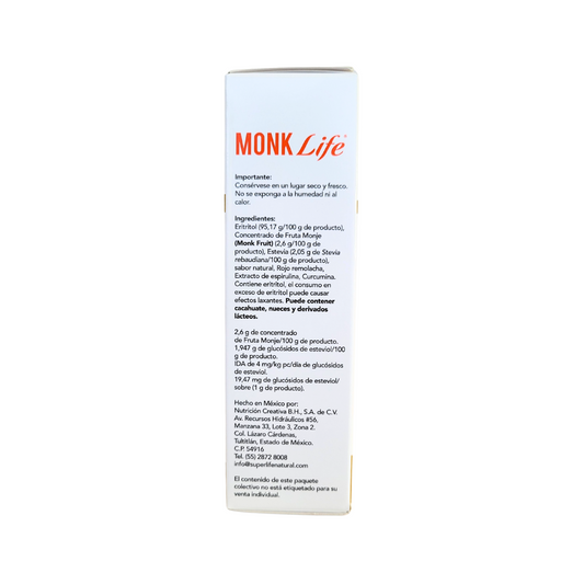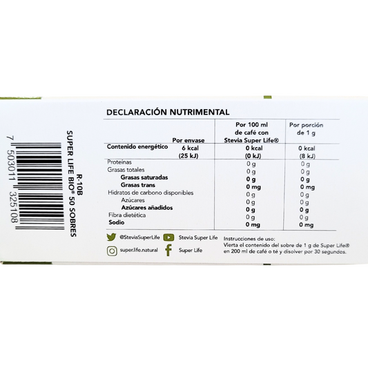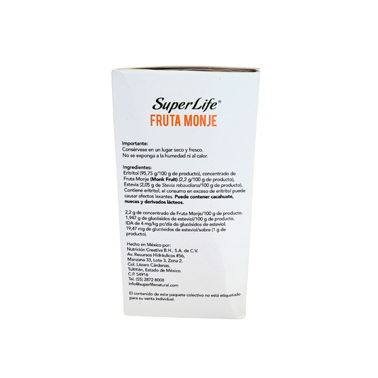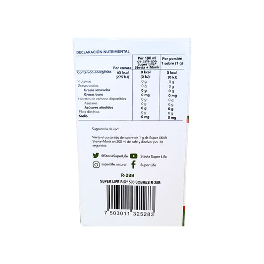 STEVIA SUPER LIFE® Y SUPER LIFE® FRUTA DEL MONJE son endulzantes de mesa a base de ingredientes no modificados genéticamente.