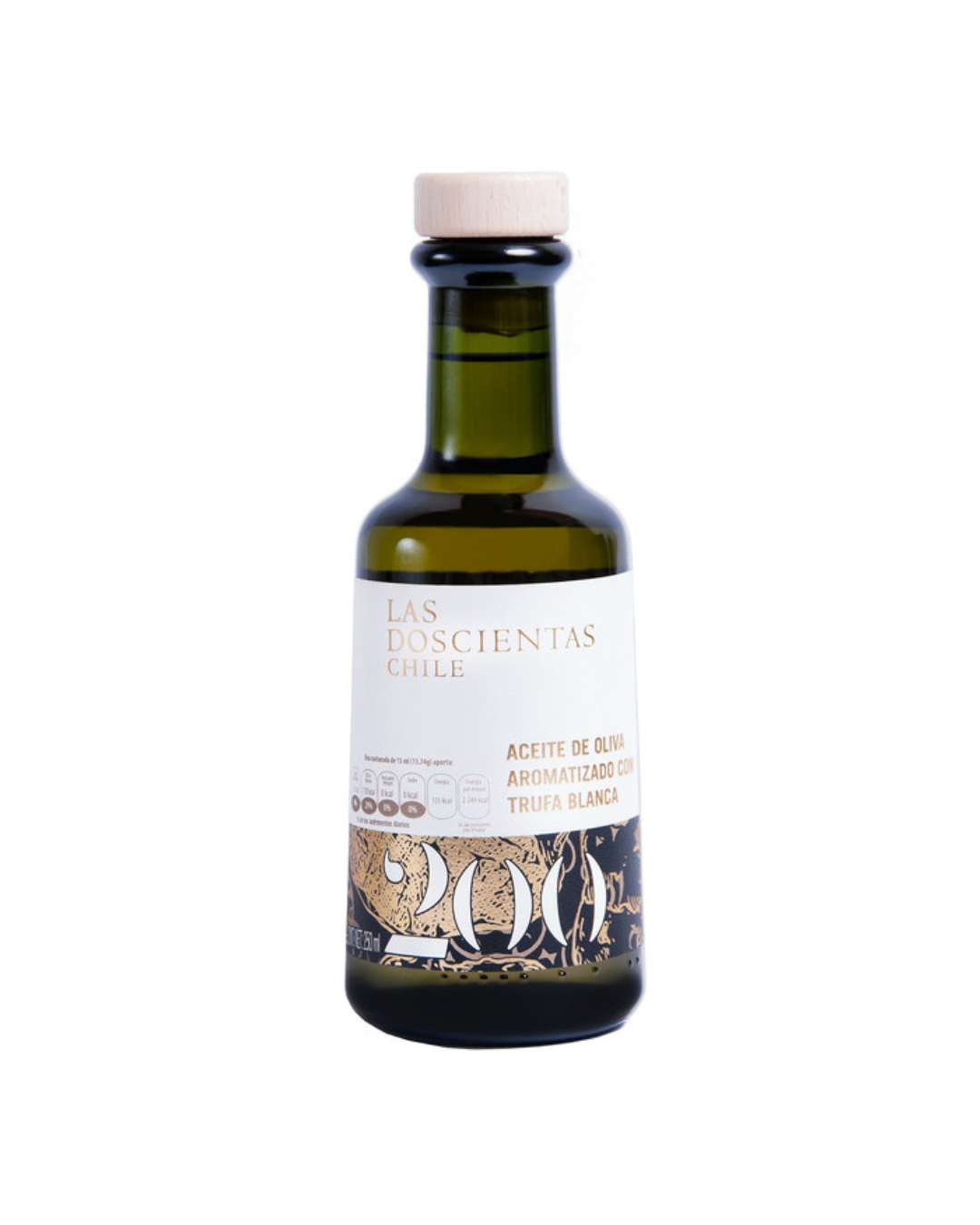 Aceite de oliva extra virgen infusionado con trufa blanca, prensa fría. Vegano, sin gluten ni azúcares añadidos.