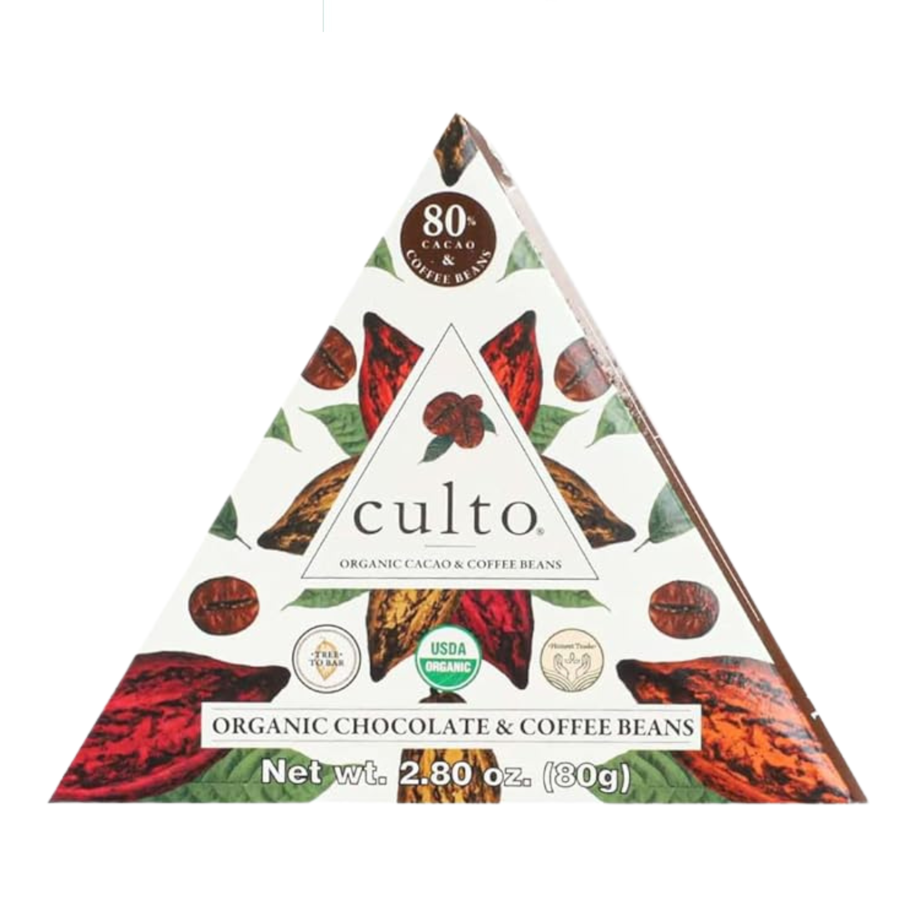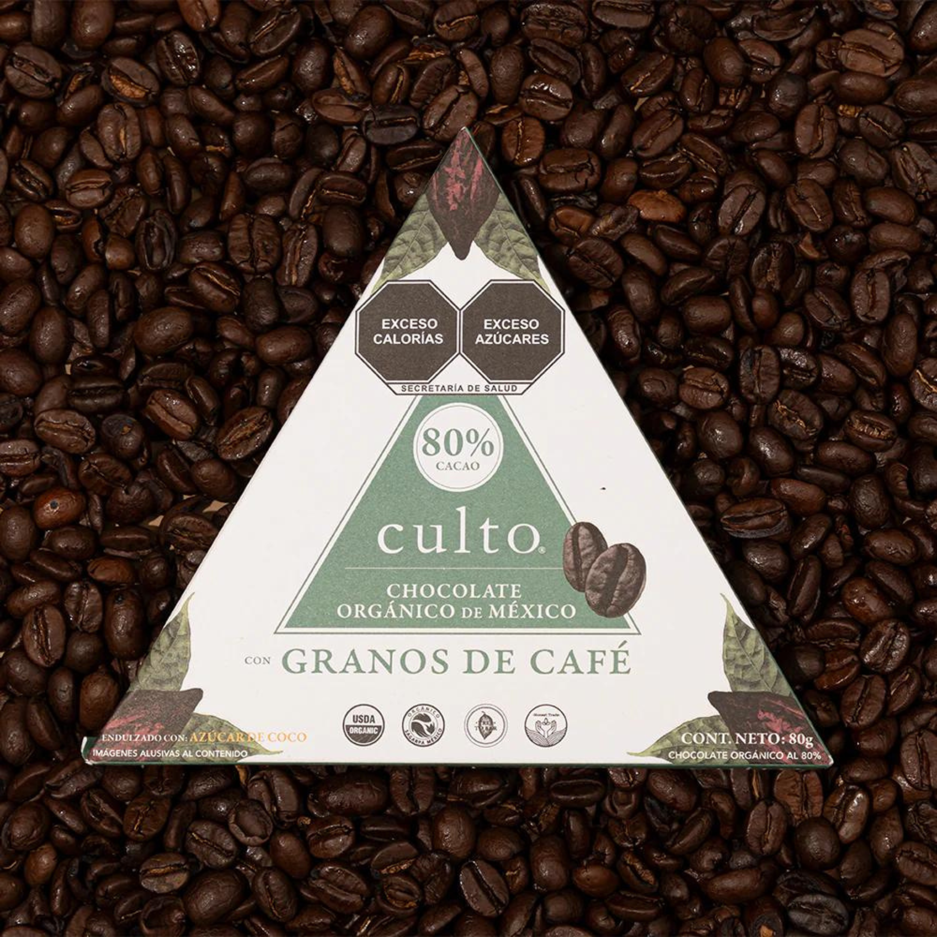Chocolate orgánico al 80%, café, azúcar de coco orgánica, manteca de cacao.