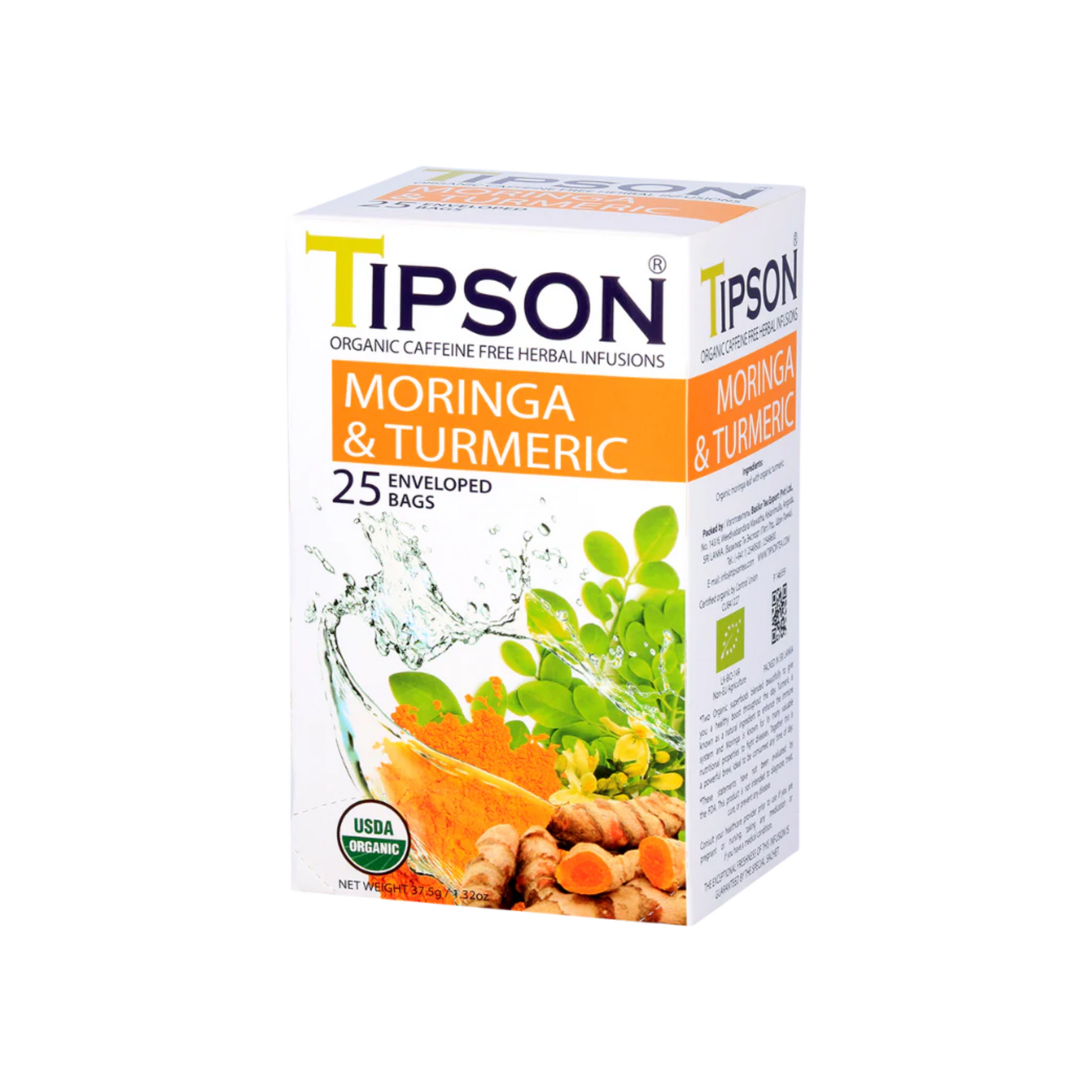 La mezcla produce una infusión de un bonito color amarillo, aroma especiado y sabor vegetal, con el acento dulce y picante de la cúrcuma.
