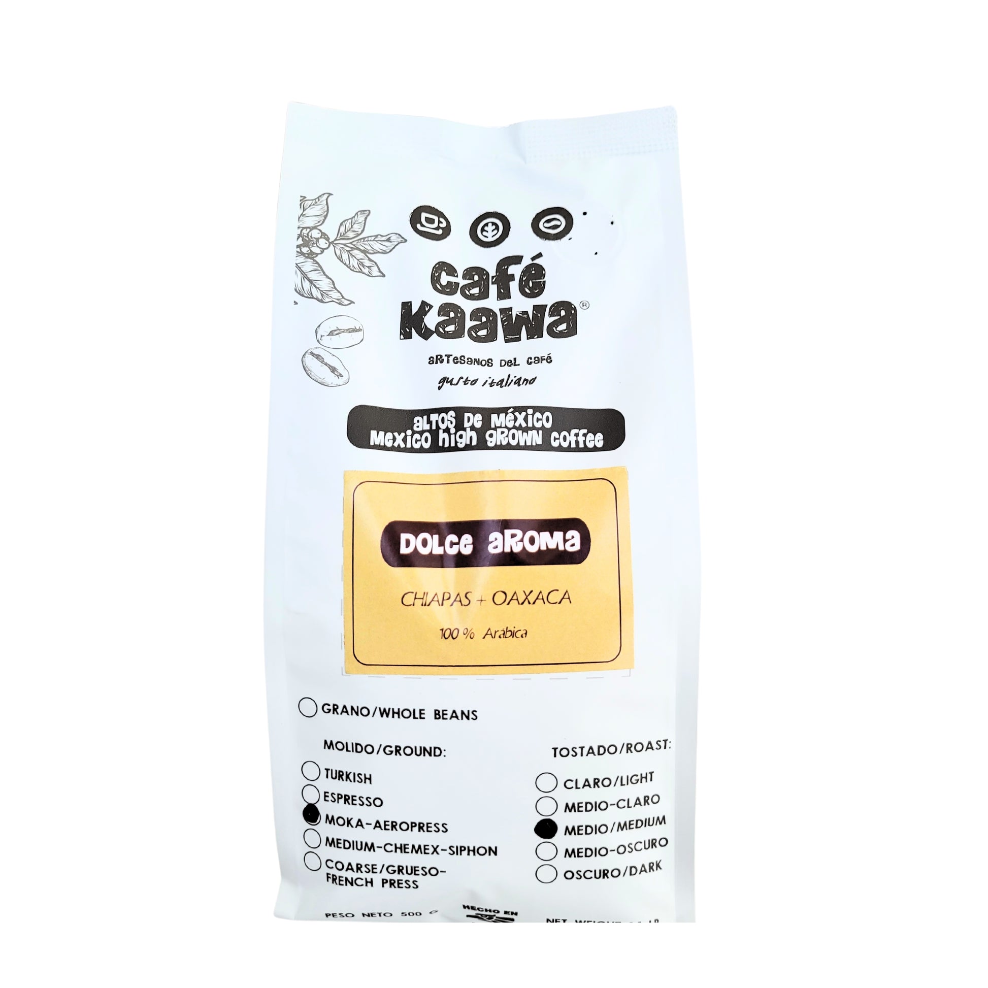 Café Blend 100% Arabica , origen Chiapas y Oaxaca, Mexico.