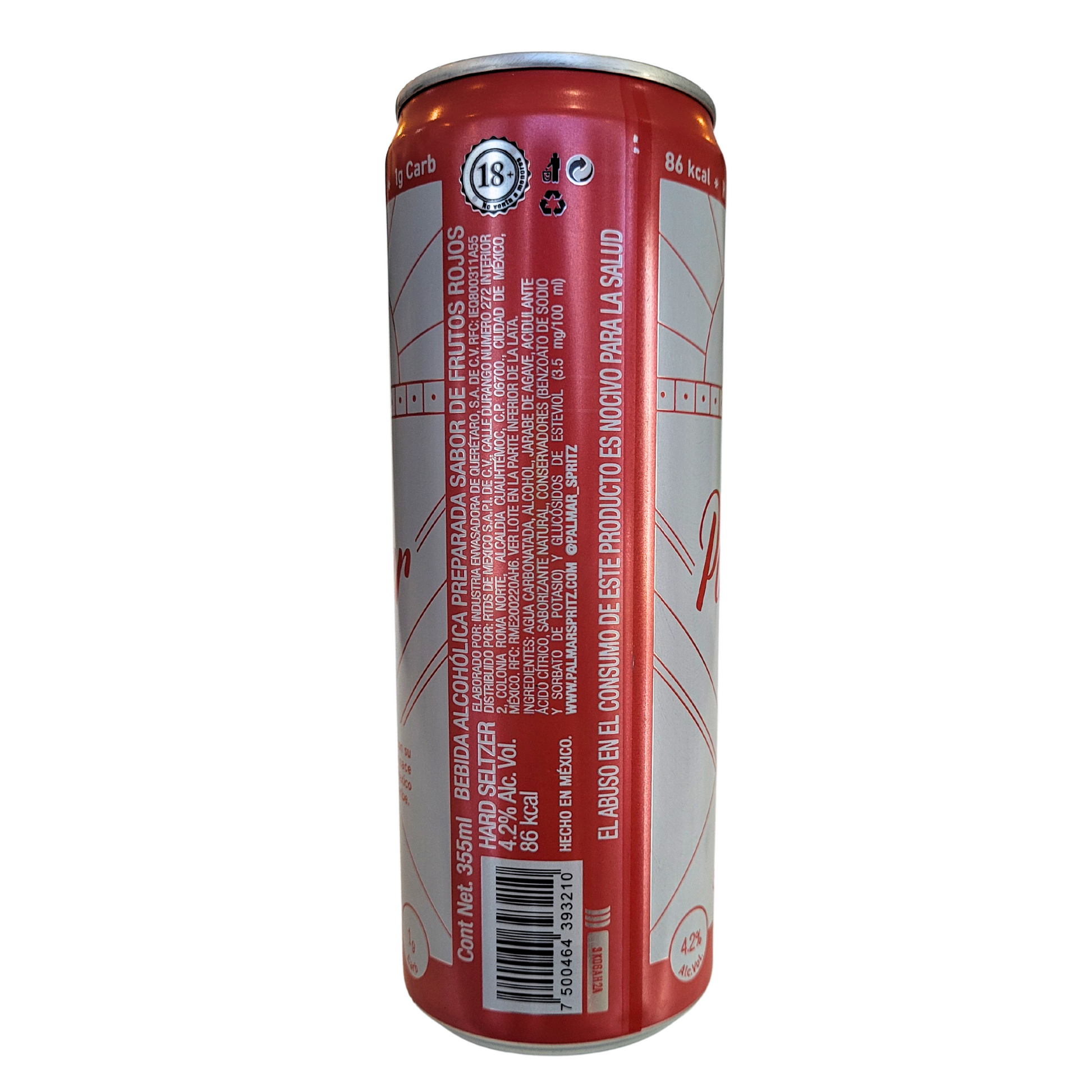 Agua carbonatada, alcohol fermentado de caña de azúcar, sabor natural de frutos rojos, edulcorante (stevia), ácido cítrico.